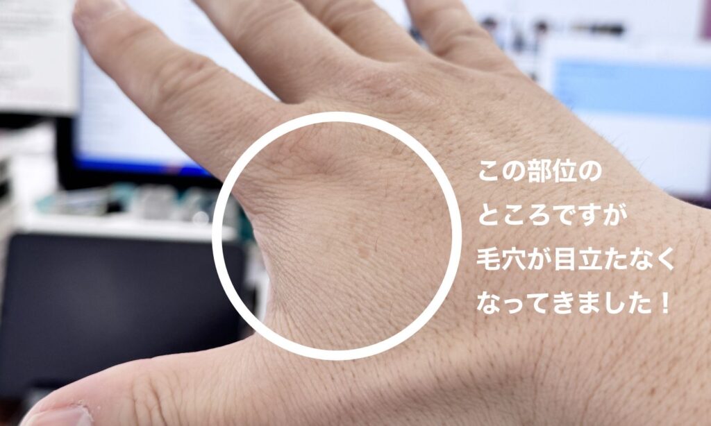 腕の甲は、毛穴が目立ってて嫌だなーと感じてました。